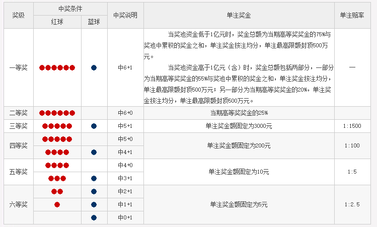 中奖等级: 根据购彩者所选号码与开奖号码的匹配情况,归纳为不同的中奖等级。