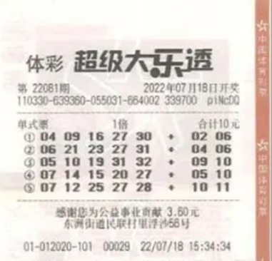 超级大乐透四等奖: 前区选择的号码中至少有3个匹配,且后区选择的号码至少有一个匹配。
