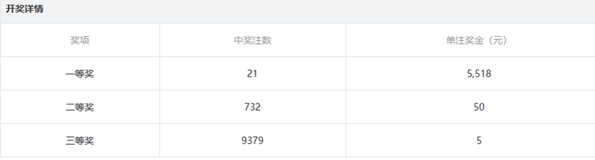 三等奖:投注号码与当期中奖号码中任意3个号码相符。