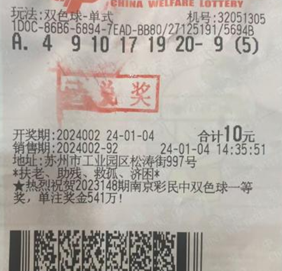 双色球2727万大奖得主:江苏新年第一位大奖得主