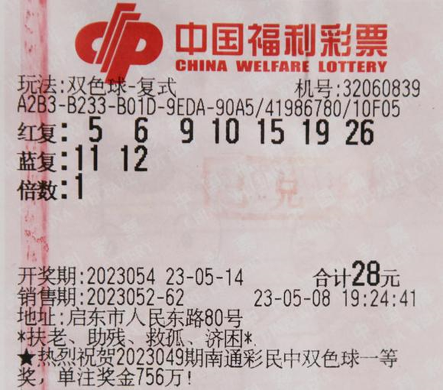 双色球723万大奖得主是谁?5月14日晚,中国福利彩票双色球游戏第2023054期开奖,南通市迎来了一位幸运彩民,喜中了总奖金高达723万元的巨额双色球一等奖。这张幸运彩票销售日期为5月8日19时24分41秒,售出于南通启东市人民东路80号、编号32060839福彩站点。