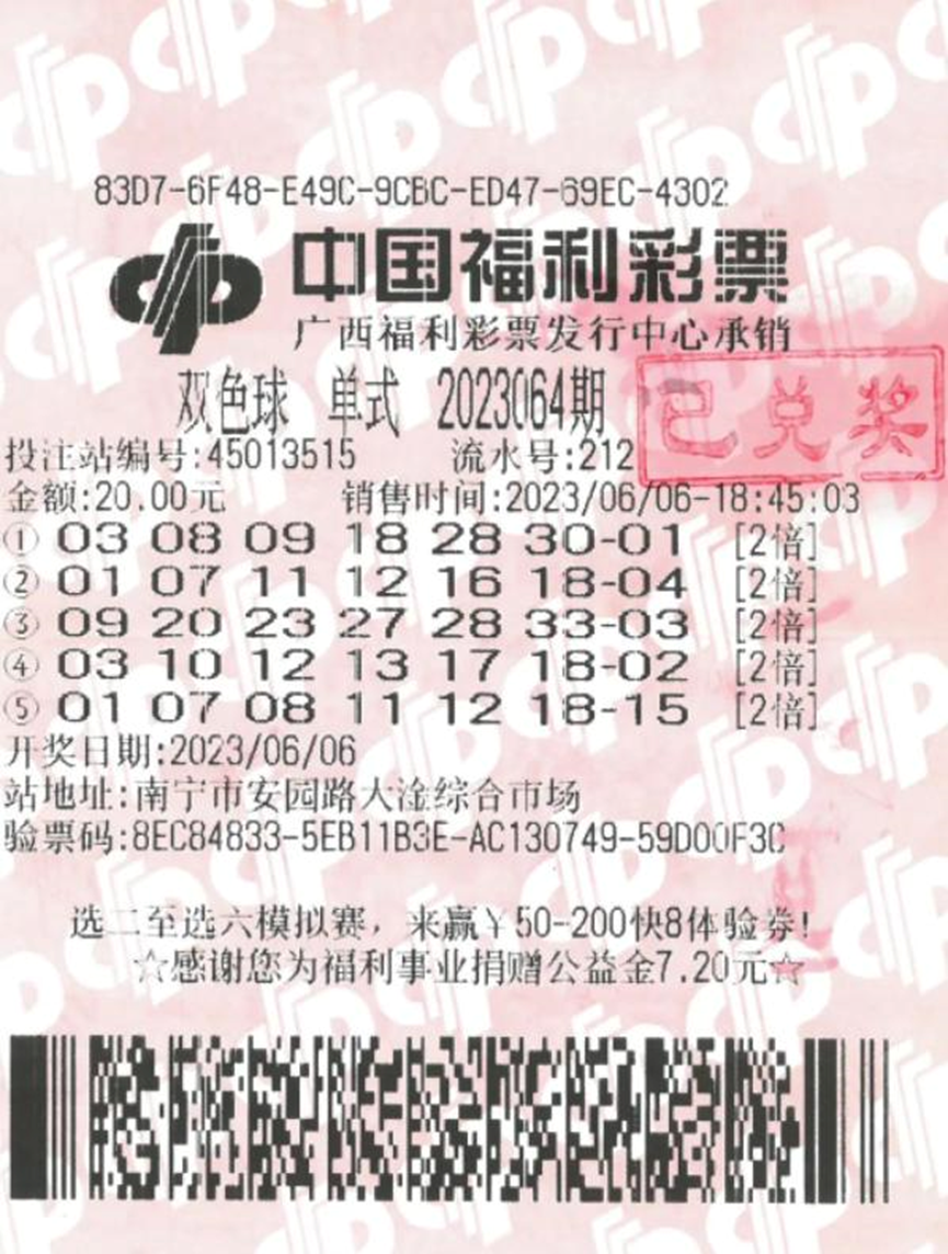双色球1178万奖金得主是谁?6月6日,福利双色球游戏第2023064期揭晓,广西迎来了一位幸运的彩民,共中出一等奖3注。其中,平果市一注为10元的自选单式投注,南宁市两注为20元机选单式2倍投注。直到6月12日下午,南宁的黄先生带着家人走进广西福彩中心,领取了他1178万元的大奖。