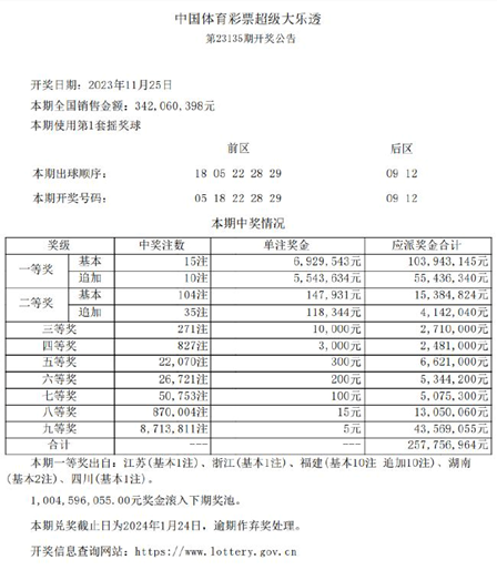 大乐透1.24亿大奖得主是谁?2023年11月25日,福建省福州市一家实体体彩店创下惊人佳绩,成功喜中大乐透第23135期追加一等奖10注,奖金总额高达1.24亿元!这也是今年体彩大乐透产生的第5位亿元大奖得主,可喜可贺。