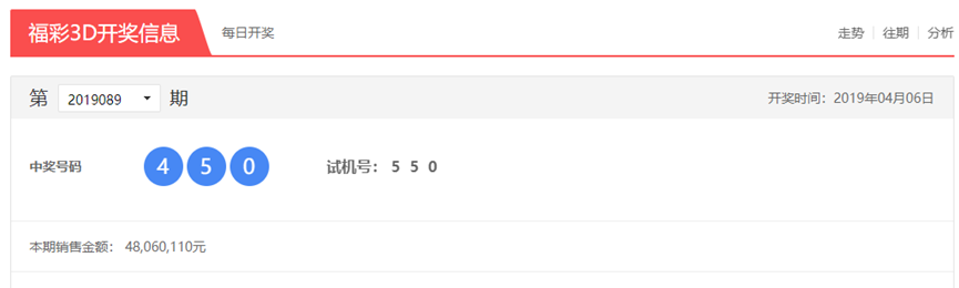 在打票的过程中,刘先生与史站长简单交流,继续选择了“0、7、2”和“3、6、0”两组号码,都是单选50倍。然后,拿着彩票离开了站点。没想到,当晚福彩3D游戏2019D089期开奖,号码居然是“4、5、0”,刘先生一举拿下奖金112650元。