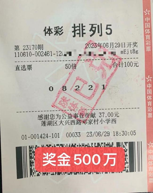 排列五500万奖金得主是谁?6月29日,排列5第23170期开奖号码“08221”喜讯传来,我省购彩者中得56注一等奖,每注10万元。而令人瞩目的是,西安莲湖区购彩者赵先生独中50注,累计获得500万元奖金!