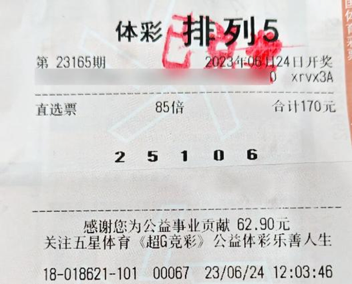 排列五850万大奖得主是谁?6月24日,体彩排列5第23165期开奖号码“2、5、1、0、6”给奉贤区南桥镇育秀路19号体彩销售网点带来了喜讯。一位购彩者携带一张85倍的单式直选票,幸运喜中排列5一等奖85注,总奖金高达850万元。这位中奖者李先生是一位购彩的忠实粉丝,他的选号策略和对体彩的热爱成为这份好运的关键。