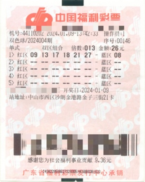 双色球182万奖金得主:喜迎开门红!中山夫妻26元机选中奖