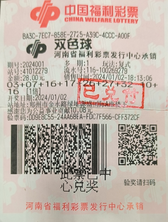 双色球839万元大奖得主:新年“开门红”