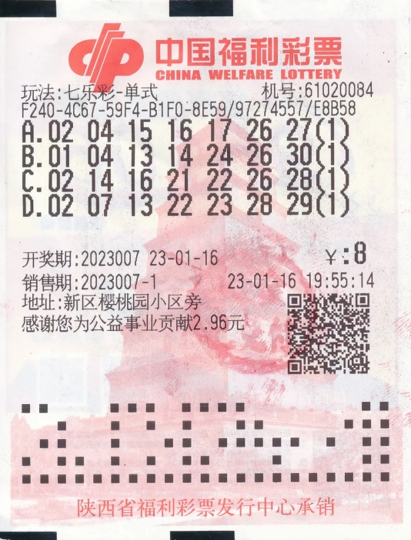 七乐彩88万奖金得主是谁?2023年1月16日,七乐彩第2023007期的开奖结果让铜川新区的彩民们沸腾不已,一注价值88万元的头奖被铜川新区樱桃园小区旁的福彩61020084号站点唰地中出。这位幸运的彩民正是铜川的张先生(化名),他以8元的投注金额,斩获了这个全省唯一的七乐彩头奖。