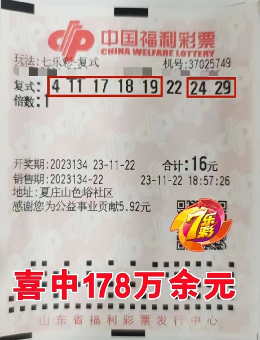 七乐彩178万元大奖得主:夫妻俩坚持购彩,8码复式投注中奖