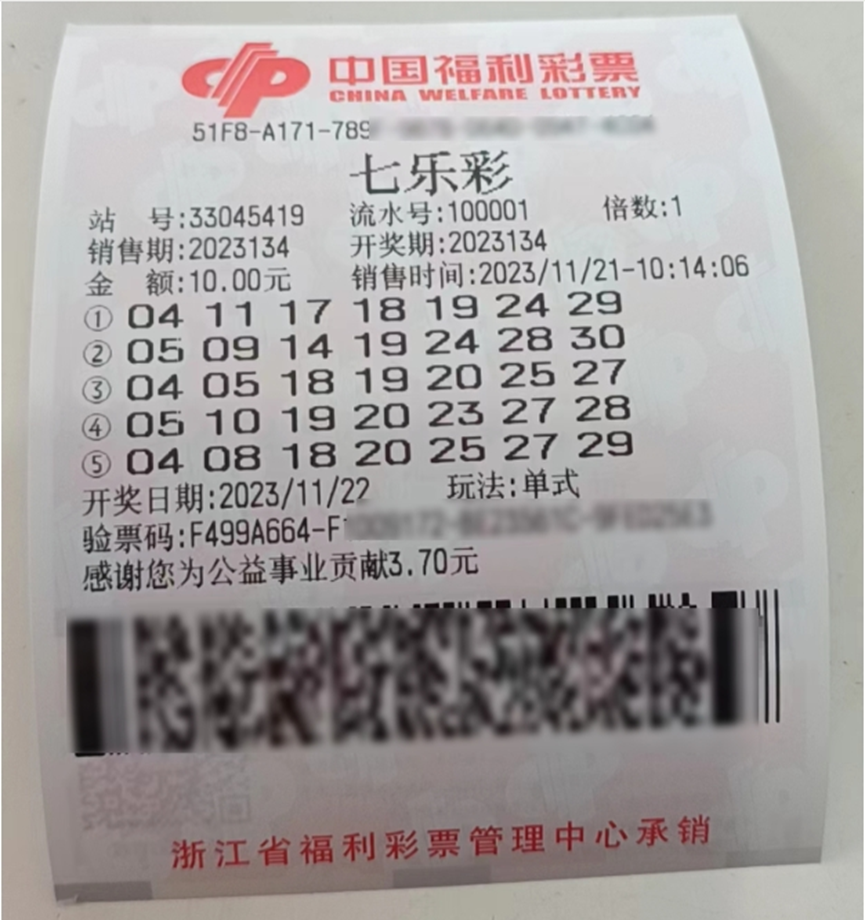 七乐彩头奖177万奖金得主:诸暨购彩者旧票重打