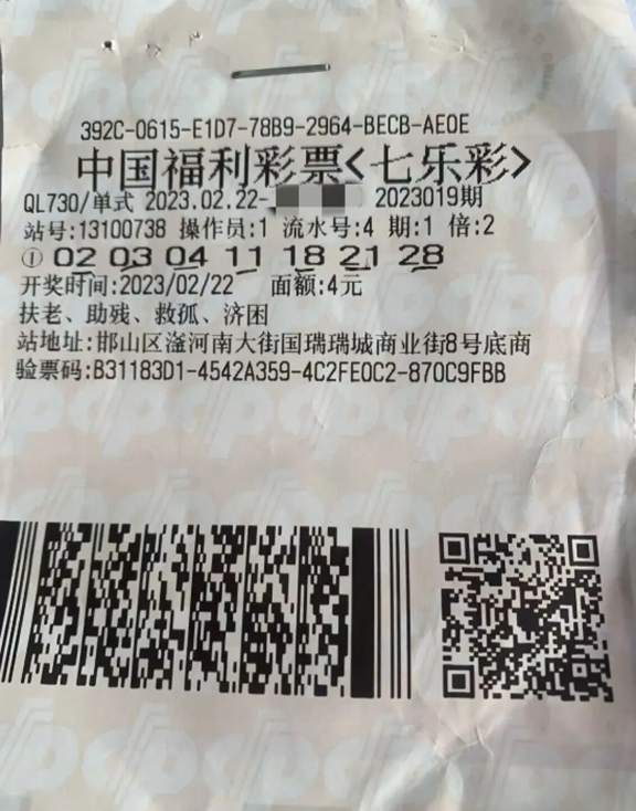 七乐彩一等奖61万奖金得主是谁?在七乐彩第2023019期开奖的那一天,邯郸市邯山区滏河南大街的国瑞·瑞城商业街13100738号销售网点迎来了一位幸运的彩民。这位购彩者在这家网点购买的一张1注2倍单式彩票中出了2注一等奖,奖金高达61.2576万元。在此之后的2月27日下午,一位七旬老太太在家人的陪同下,来到省福彩中心办理了兑奖手续,领取了这份丰厚的奖金。