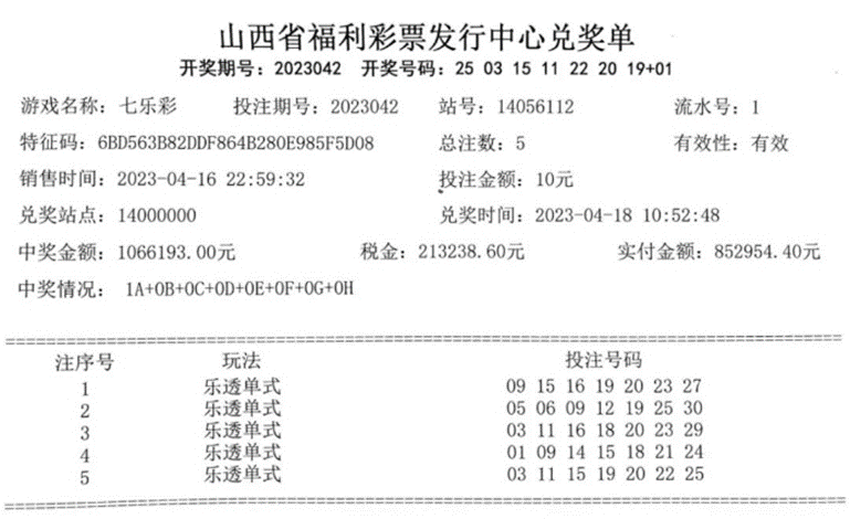 七乐彩一等奖106万奖金得主:恭喜晋城90后彩友