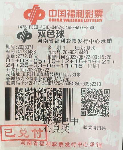 数据显示,这个大奖诞生于驻马店市正阳县真阳镇鼓楼社区西41780488站点,中奖彩票是一张复式11+3票,不仅中得当期一等奖,还收获其他奖项,总奖金高达642万元。这也是河南购彩者今年第28次封顶双色球一等奖,再次证明了这里是中大奖的幸运之地。
