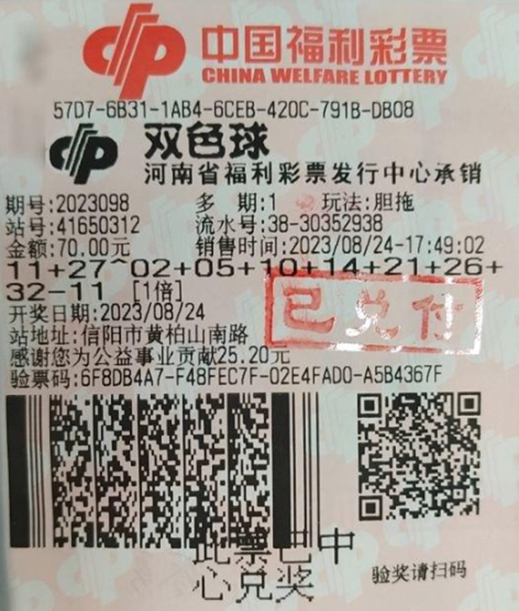 双色球656万奖金得主是谁?8月24日晚,福彩双色球2023098期开出头奖13注,单注奖金652万元,其中1注花落河南,出自信阳市商城县41650312站点,为一张2胆7拖1蓝票,命中1注一等奖,共收获奖金656万元,这也是河南购彩者今年收获的第37注一等奖。
